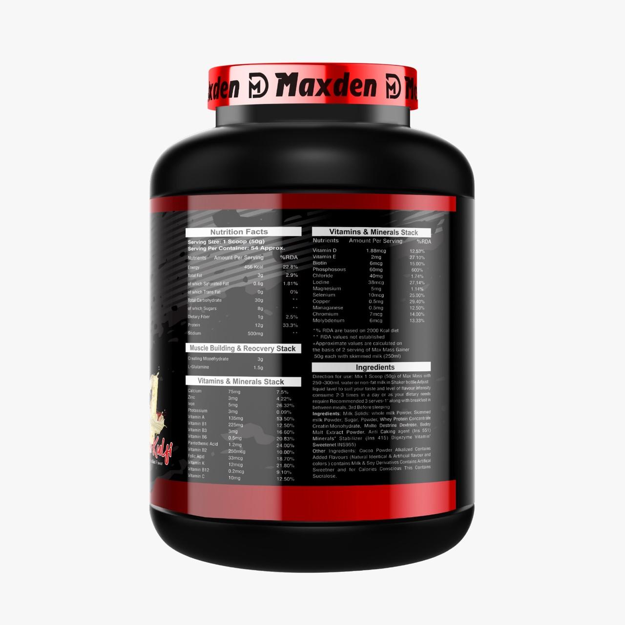 Indulge in traditional flavour while you bulk up the smart way! Max Mass Ultra Premium Mass Gainer in rich Kulfi flavour delivers high-quality calories, protein, and complex carbs to support rapid and healthy weight gain. Ideal for hard gainers and fitness enthusiasts, it fuels muscle recovery, growth, and energy with every delicious scoop.